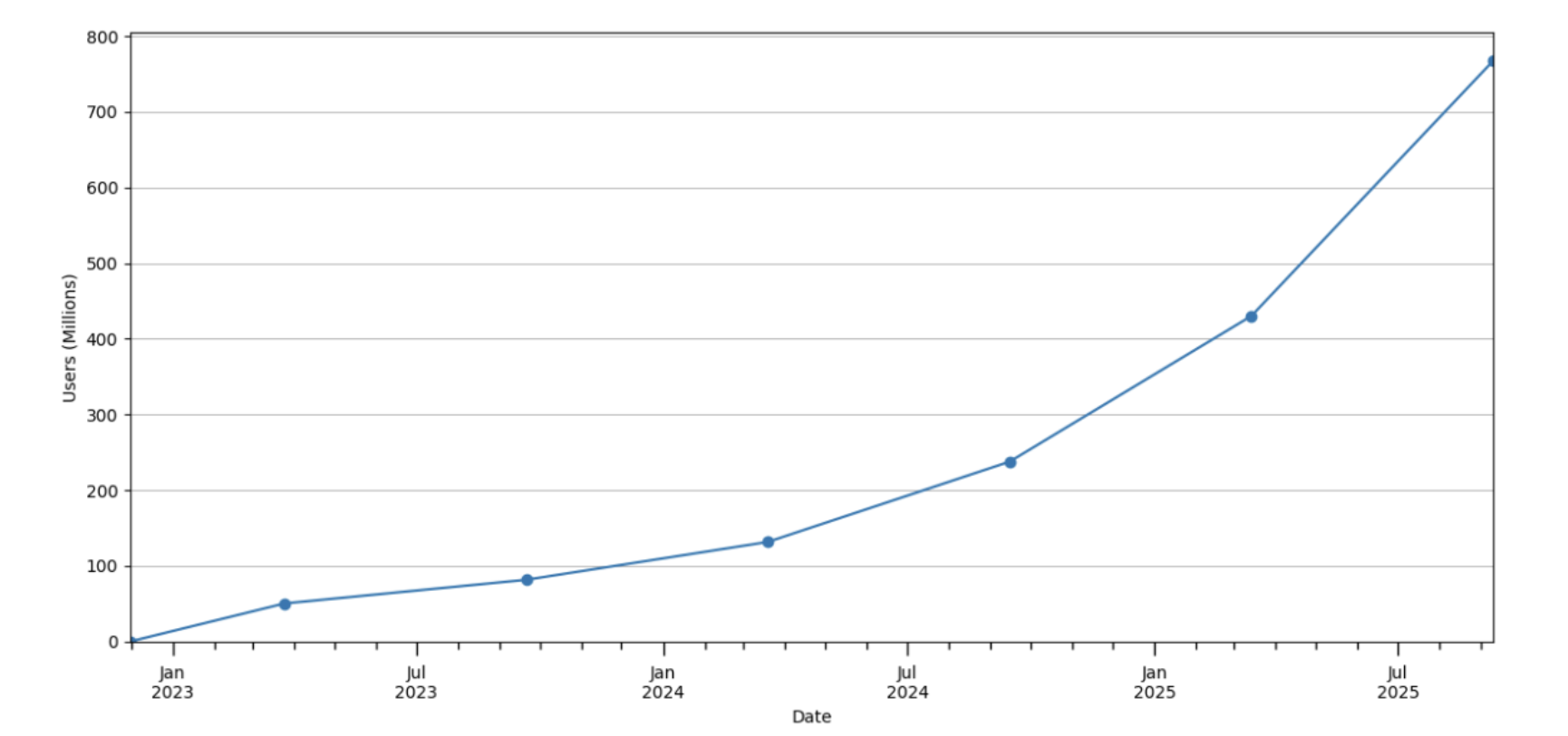 One of the clearest signs of how fast AI search is scaling comes from ChatGPT’s user growth. Since launching in late 2022, weekly active users on consumer plans have soared to more than 700 million by mid-2025 - roughly 10% of the world’s adult population.